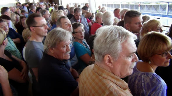 Тут уже толпился народ, ожидая час отплытия. Вдруг по громкоговорителям корабля раздалось какое-то суровое объявление. Зовут на инструктаж! объявила жена. Расскажут, у кого какая спасательная шлюпка на случай чего. Надо идти!