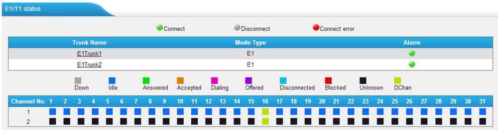 В WEB-интерфейса шлюза отображается статус каждого канала в потоке: