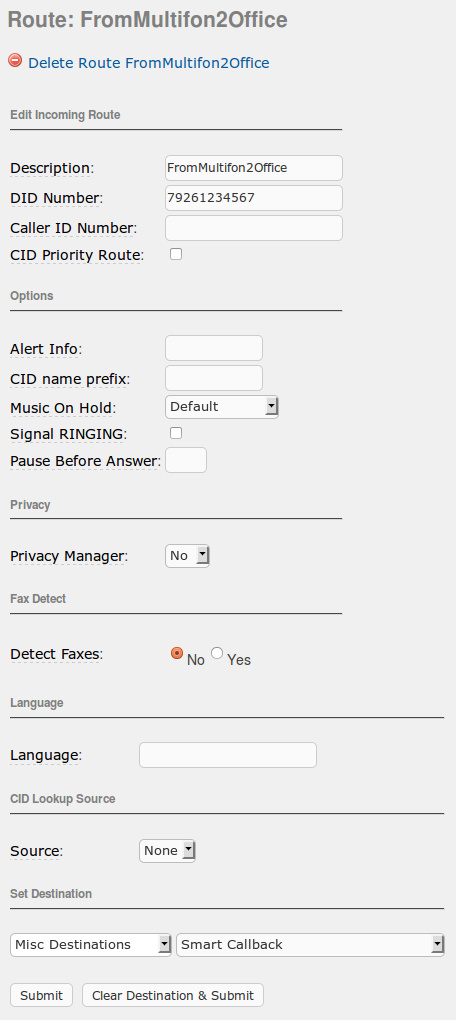 Чтобы принимать звонки с линий Мультифона необходимо настроить правило обработки входящих вызовов (Inbound Route):
