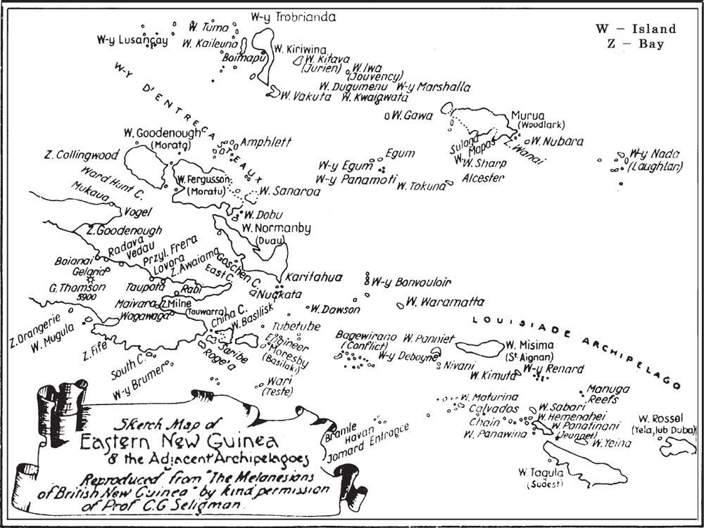 Воспроизведенные в этой книге две карты и две таблицы в ней я, заручившись любезным согласием профессора Зелигмана, взял из его книги «Меланезийцы Британской Новой Гвинеи». Я обязан поблагодарить и капитана Джойса (T. A. Joyce), издателя журнала «Man», позволившего мне еще раз использовать здесь те таблицы, которые ранее были опубликованы в его журнале.