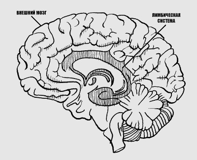Под этим верхним, «разумным», мозгом есть мозг внутренний, лимбическая система, иногда его называют еще эмоциональным мозгом. Он у нас примерно такой же, как у других млекопитающих, не знающих ни таблицы умножения, ни спряжения глаголов. Но знающих, что они хотят жить, размножаться, не испытывать боли, не быть съеденными хищником, защищать своих детенышей.