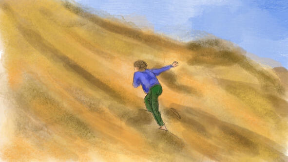 А потом катиться с неё вниз, как с горки. Песок попадал в шорты. Было очень весело.