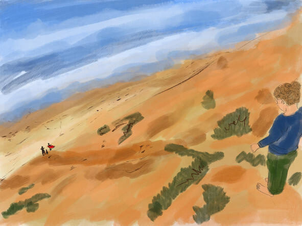 Марк со старшим братом Давидом часто играли в песке на берегу. Они выкапывали лопатами глубокие ямы и с разбега прыгали в них. А ещё им нравилось карабкаться вверх по песчаной дюне.