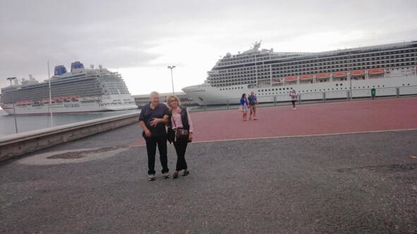 Лирическому названию, лирическое фото. Мы с Аминой на фоне круизных лайнеров. «Поэзия» справа.