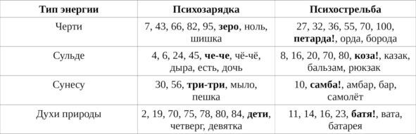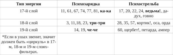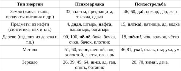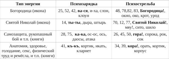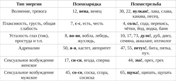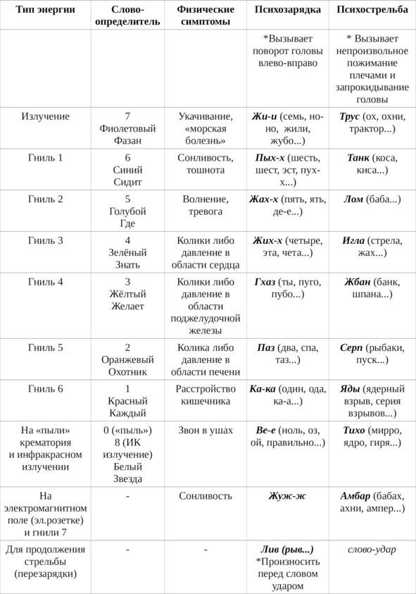 таблица 2: психозарядка и психострельба