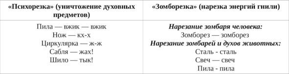 Таблица 8: на духах и чертях
