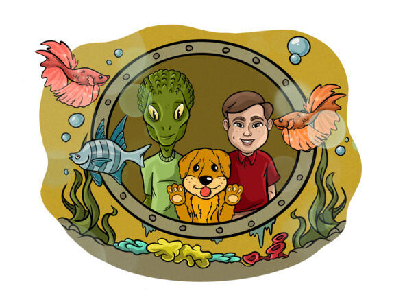 Улан смотрел на гладь океана, и тут появилась тарелка, точь-в-точь такие Левий видел на картинках фантастических романов, только вылетела она не из глубин космоса, а из толщи воды. Остановилась эта машина в метре от нашей троицы и зависла над Атлантикой. Когда они вошли внутрь, их восхищению не было предела. Внутри корабля все мигало и переливалось, как огни на елке. Сама тарелка была вся прозрачная, как будто они находились в стеклянном шаре, а посередине сидел очень похожий на Улана «дракончик».