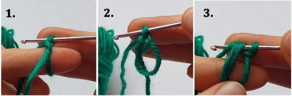 1. Связать первую петлю (см. Урок 3), снять петлю с пальца, но петлю не затягивать.