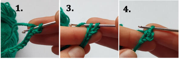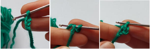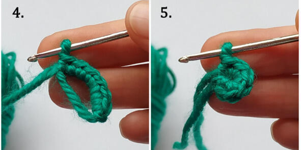 3. Связать 1 столбик без накида, при этом крючок вводить в большую петлю, которая ранее была на указательном пальце.