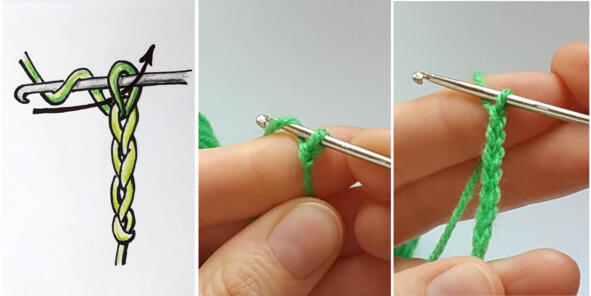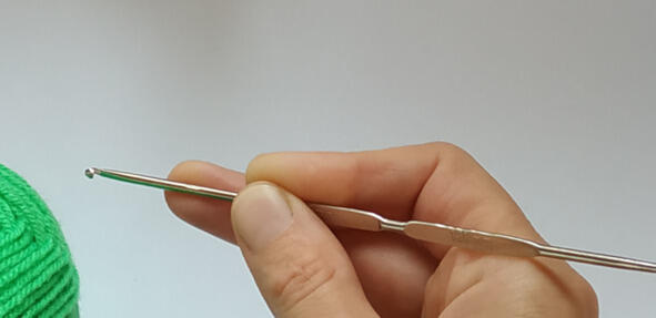 Начнем вязать воздушные петельки. Крючок следует держать так: