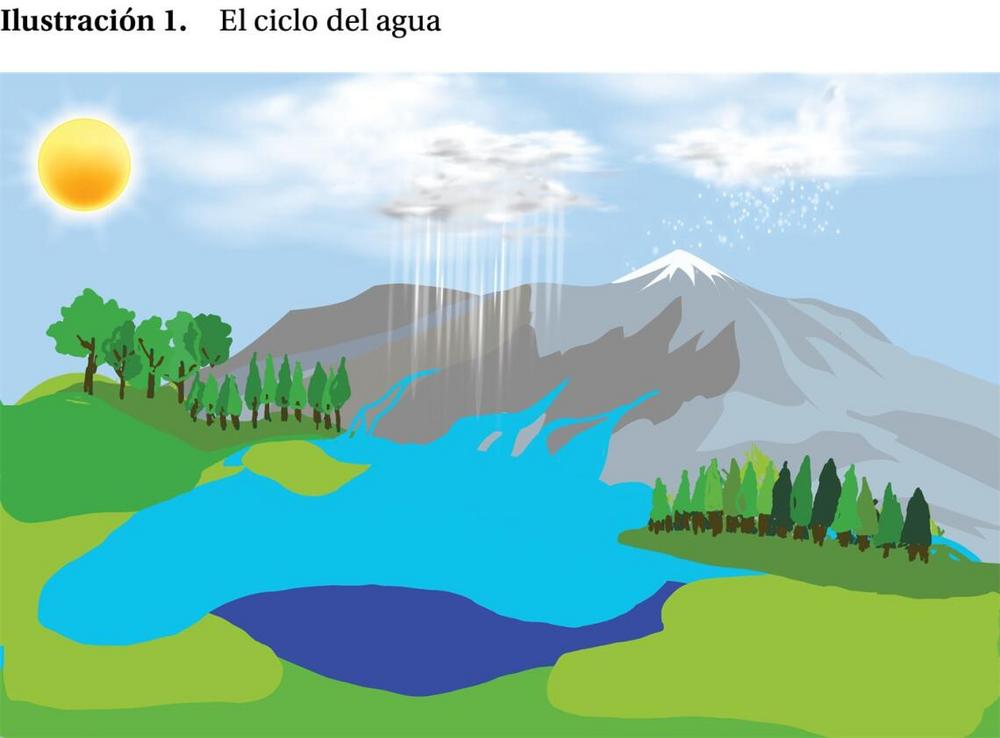 Todos los días, tenemos ejemplos de la transformación de la vida en nuestro mundo. Tomemos el ciclo del agua (Ilustración 1). Cuando el sol entra en contacto con la superficie del agua en el lago, el agua se evapora y se eleva hacia el cielo. Al entrar en contacto con el viento frío, este tipo de agua se convierte en lluvia, que luego vuelve a caer a la Tierra para convertirse nuevamente en agua en el lago.