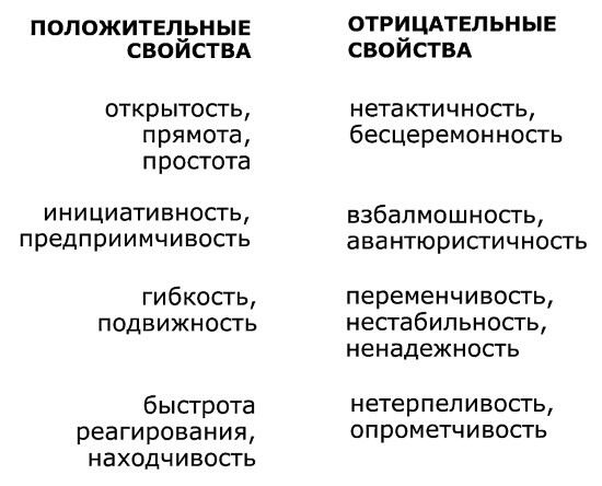 При крайней обостренности гипертимных черт характера появляется опасность серьезных проблем как для окружающих, так и для самого человека. Положительные черты этого характера, будучи резко усилены, превращаются в нежелательные или трудно переносимые свойства. Попробуем проследить такие переходы: