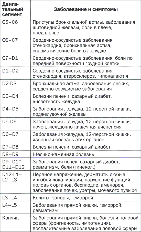 Таблица 2. Связь патологии позвоночника и внутренних органов
