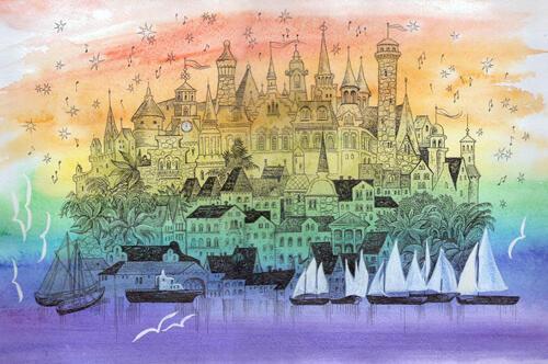 Лёгкий бриз шевелил занавески, и мифическая флора, населявшая их, двигалась, как живая. С высоты окна были видны парусники в бухте и чёрная махина эсминца на рейде. Напротив, через площадь, возвышалась башня курантов: золочёные стрелки-змеи извивались в ярких солнечных лучах, в секундах от полудня. Удар колокола гулко разнёсся над площадью, поднимая с крыш чаек и голубей.