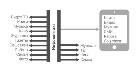 Любопытно отметить еще одну тенденцию: разнообразие источников, которыми мы пользуемся в профессиональной и личной жизни для получения контента, постоянно сокращается. Видео, музыка, СМИ, рабочие процессы, социальные связи и фото чаще всего потребляются на 1 или 2 устройствах вместо 56 при аналоговой инфраструктуре. Количество контактов увеличилось, но «разнообразие» сократилось. За два минувших десятилетия устройств, которые мы используем, стало в 2 раза меньше (рис. 3.1).