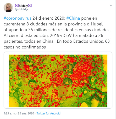 Si tenga presente che il termine COVID-19 non è stato il primo ad essere utilizzato per questa malattia, ma è il termine modificato e reso pubblico quasi due mesi dopo il primo caso segnalato allOMS, il che ha portato alcuni ad affermare che le motivazioni di questa modifica, col fine di dare al virus un nome ufficiale, nascessero dalla necessità di evitare le conseguenze economiche negative dellassociazione del nome alla malattia nei confronti di una regione o una popolazione. (@radioyskl, 2020) (vedi Figura 6).