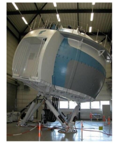 Em seguida, ele caminhou até um dos seis largos aparelhos esféricos fixados em servo-cilindros que movimentam a plataforma em resposta a situações simuladas de voo e combate aéreos.