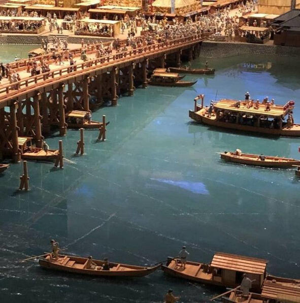 А по этим макетам видно, что улицы в старом Эдо были широкими. На первых этажах всегда были магазины.