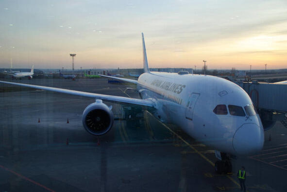 Улетали из Домодедово в 17 часов. Вот он, лайнер авиакомпании Japan Airlines.