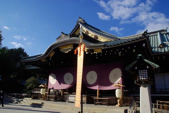 Императорское святилище Ясукуни посвящено японцам, погибшим в различных войнах, в которых участвовала Япония. Святилище было основано императором Мэйдзи в июне 1869 года под названием Сёконся, чтобы почтить воинов, павших за императора в японской гражданской войне, именуемой война Босин. Согласно традиции, когда император Мэйдзи посетил храм в первый раз, 27 января 1874 года, он сочинил стихотворение. Оно гласило следующее: «Я хочу заверить тех, кто сражался и погиб за нашу страну, что ваши имена будут жить вечно в этом святилище». В 1879 году император дал святилищу новое название Ясукуни, что буквально означает «храм мира в стране».
