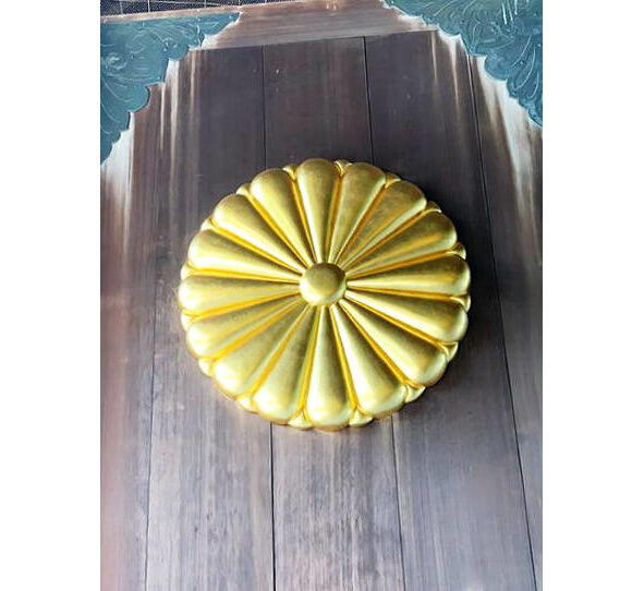 Миновав ворота, на створках которых изображены эффектные золотые хризантемы, имеющие полтора метра в диаметре,