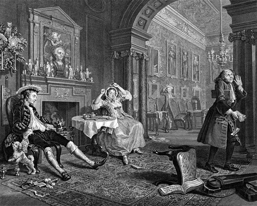 Уильям Хогарт. Вскоре после свадьбы, резцовая гравюра на меди