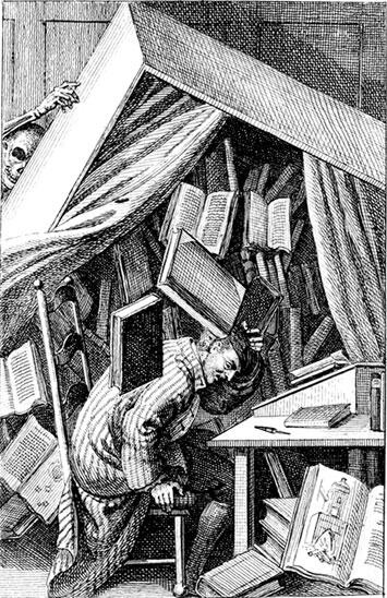 Смерть библиофага, гравюра из книги Иоганна Музеуса «Видения смерти в манере Гольбейна», 1785