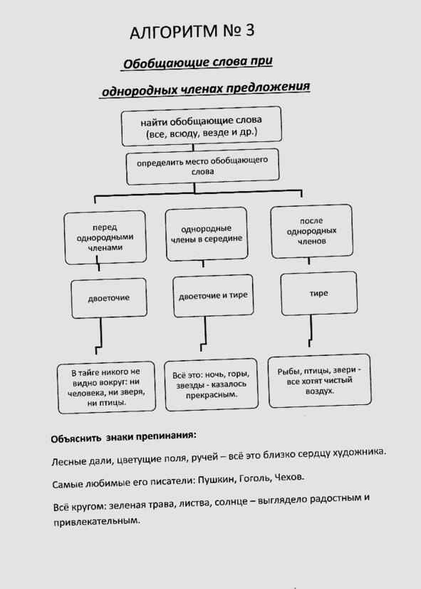 К алгоритму 3 «Однородные члены с обобщающим словом»