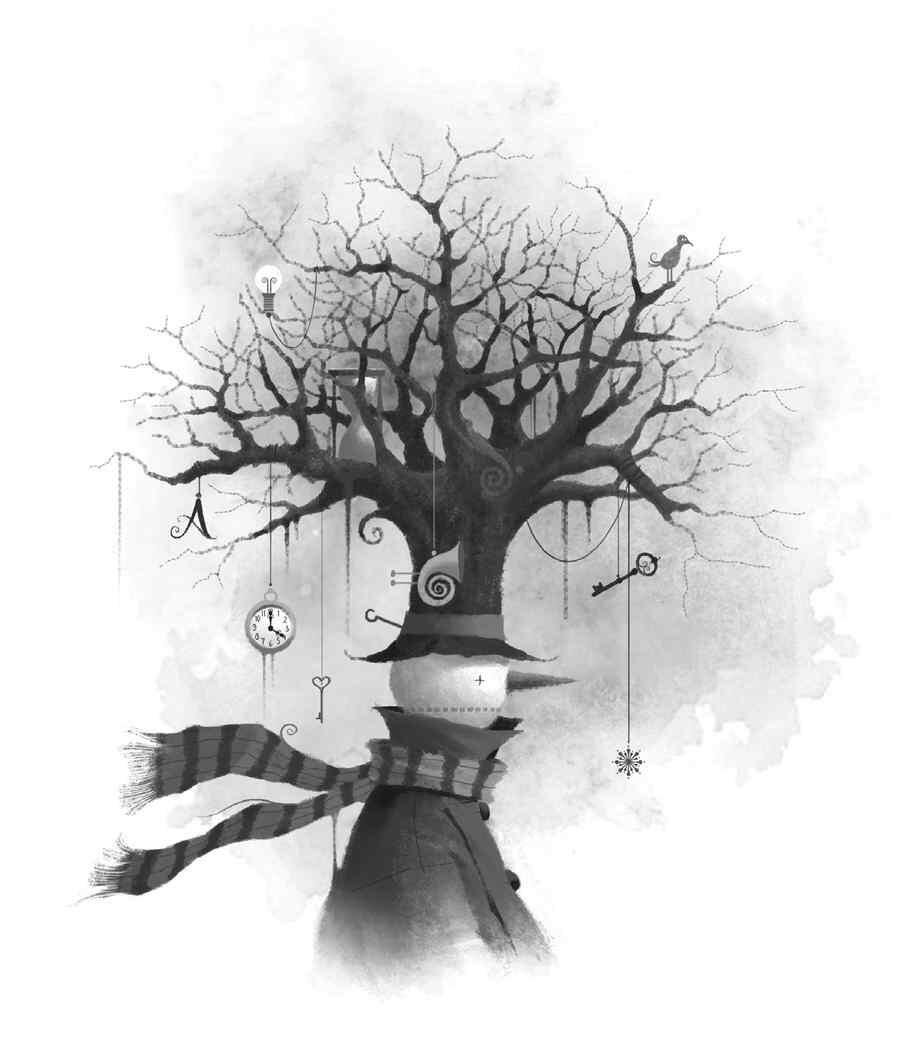 Зима, деревья, черный карандаш