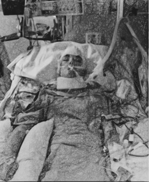 "Elle a bien eu un accident, une collision avec les poings de quelqu'un. Il l'a battue à mort, puis l'a laissée pour morte. Elle a six côtes cassées, une fracture du crâne, une fracture ouverte de l'humérus droit, et une contusion dans le bas du dos gauche qui a causé un traumatisme au rein de ce côté."