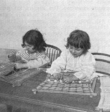 Всё это кажется вам очень скучным. Но для детей до и после трёх лет это, напротив, кажется очень интересным, особенно когда ребёнок властен сам выбирать занятия, которые ему нравятся. У меня прошлым летом была в продолжение двух месяцев заведёна школка из десятка детей от двух лет и старше. Я приготовила домашним образом несколько приспособлений по образцу монтессорских и увидала, что дети с большим удовольствием занимаются ими, когда им предоставлено делать это добровольно. Я представляю себе, что если бы я насильно засадила ребёнка пяти-шести лет расстёгивать и застёгивать столько-то раз подряд рамку с пуговицами, то он делал бы это с большим протестом, а когда я выходила к детям на балкон и, вынося рамки, спрашивала: «Ребята, кому пуговицы? кому крючки? кому банты?», они с охотой и весельем всякий выбирал своё. «Я буду крючки делать, они тугие-растугие!» «Ну, чего крючки, я буду банты завязывать!» И так далее. И все с охотой занимались тем, что сами выбрали. Один малыш трёх лет так увлекался этими занятиями, что когда раз старшие дети кончили заниматься и бегали по террасе вокруг стола, он только на минутку поднял голову от своей работы и не то недоумевающе, не то соболезнующе, важно произнёс: «Ишь, взбегались!» И продолжал застёгивать свои кнопки. Очень нравились детям катушки с шелками, на которые они подолгу любовались, положивши рядами красивые цветовые гаммы. Один близкий мне ребёнок шести лет, проведши несколько лет за границей, после первего урока со мной встретил свою мать, пришедшую за ним, словами: «Maman,comme cest amusant!» Моих детей очень забавляла следующая игра: приносился кувшин с водой и стакан. Ребёнок должен был из кувшина налить, не разлив, воды в стакан, сойти с ним по ступенькам с балкона, пронести стакан вокруг большой клумбы, не расплескав, и осторожно влить опять в кувшин. Интересно отметить, что маленькие дети всегда стараются взять на себя задачу скорее более трудную, чем более лёгкую. И потому мои малыши всегда старались налить стакан пополнее, чтобы было труднее нести его, не расплескав.