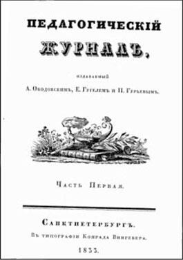 Итак, тесный кружок друзей и единомышленников, учителей Гатчинского и Санкт-Петербургского воспитательных домов Е. О. Гугель, П. С. Гурьев и А. Г. Ободовский организовали первый в России «Педагогический журнал».