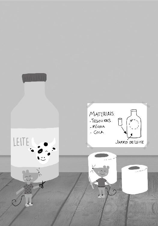 Fabricar uma nave espacial é mais fácil do que parece se usarmos a imaginação. Alex e Álvaro pegaram uma garrafa plástica de leite, vazia, para fazer a nave, e rolos de papel higiênico para os motores. Como tinham que entrar na nave, fizeram uma porta bem grande para que qualquer rato, por mais gordo que fosse, pudesse passar. Decidiram fazer também uma janela, para poder observar enquanto voavam.