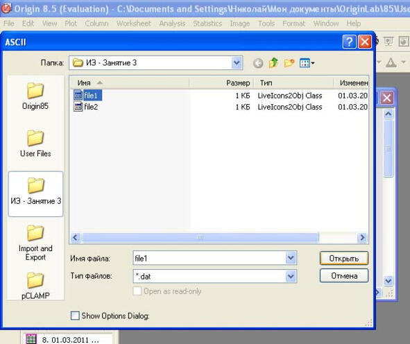 Откроется окно выбора файла данных. В этом окне выберете в диалоговом окне файл данных. Выделите его мышкой и нажмите мышкой кнопку Открыть (Open). Графически информация представлена на рисунке 1.53.