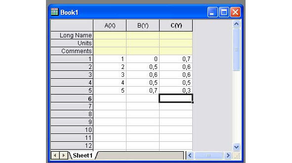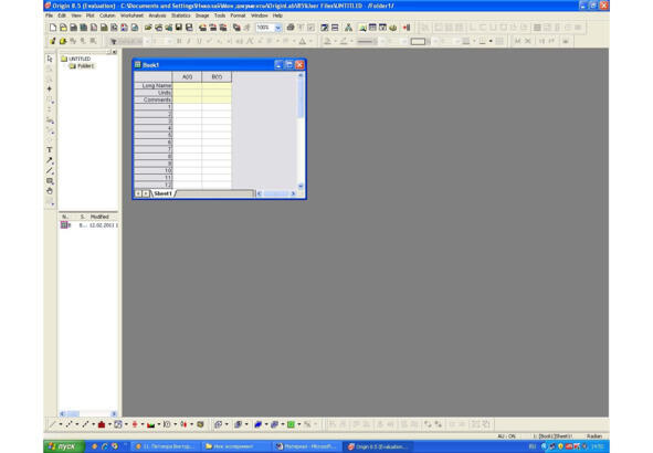 Для построения такого графика запустите программу Origin. Откроется главное окно программы с пустой рабочей книгой (рисунок 1.51).