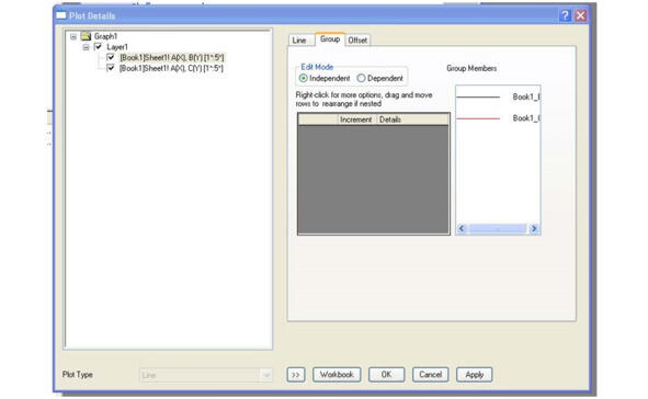 Затем следует сделать двойной клик мышкой на одной из кривых. Откроется окно форматирования кривых. Сначала может открыться вкладка Group, где необходимо выбрать независимое форматирование кривых (Edit mode Independent). См. рис. 1.46.