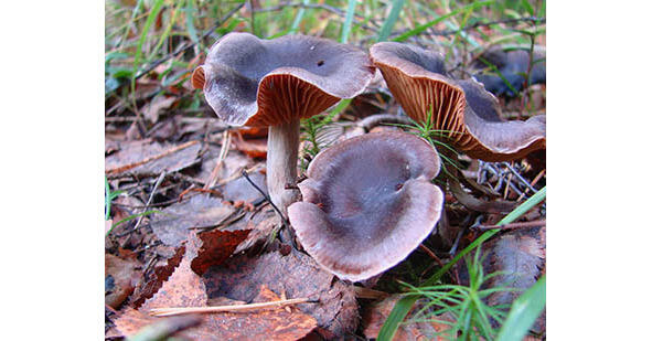 Пластинки частые, серо-коричневые, иногда с розовым оттенком.