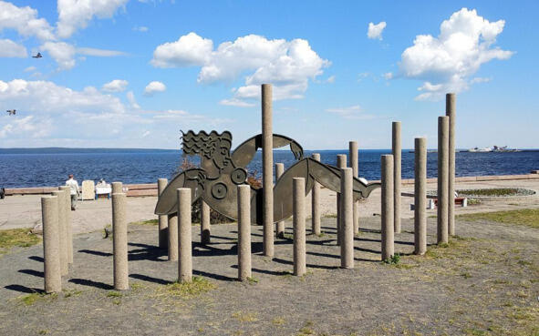 Скульптура «Кошелек» на Онежской набережной