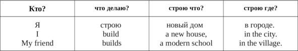 На втором месте всегда сказуемое, т.е. действие, о котором рассказывается в предложении / сказуемое строить (что делать?) Далее следует еще один объект, на который указывает действие. В нашем примере: строю что? «новый дом» a new house. Здесь нужно запомнить порядок слияния прилагательного и существительного.