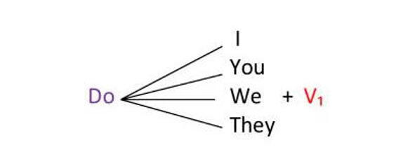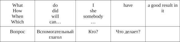 В отрицательных предложениях та же схема, только с отрицательными вспомогательными частицами.