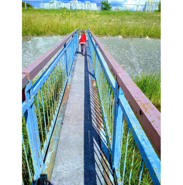Вот эту железную дорогу начали строить когда я родился. Потом её построили и сейчас по ней идут поезда. Я на них смотрю сейчас.