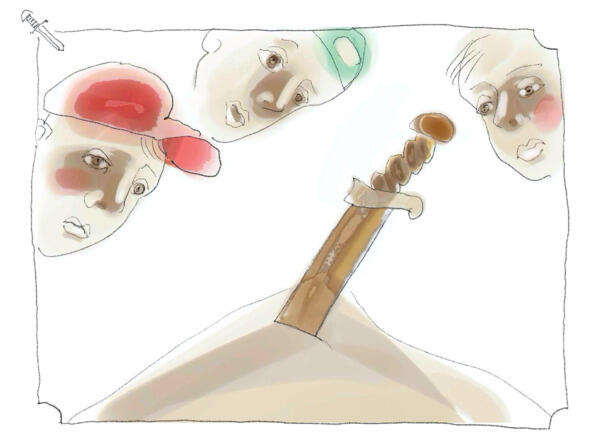 Ребята вернулись быстро и почти одновременно. Стали осторожно копать совком, а от меча убирать землю кисточкой. Вскоре меч был освобожден почти на полметра. Игорь стал осторожно тянуть за рукоятку, но меч не поддавался. Стали копать дальше.