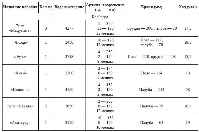 1. 8 из 10 японских крейсеров имели преимущество в скорости хода над противником от 4 до 10 узлов. Это позволило японцам выделить из главных сил специальный маневренный отряд «летучую эскадру» с 18-узловым ходом. Организованное выделение такого соединения и придавало японскому флоту большую маневренную гибкость.