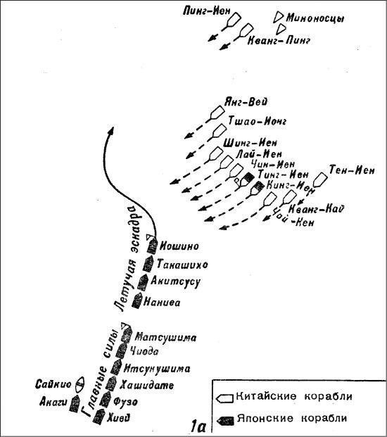 Бой при Ялу 17 сентября 1894 г. Бой между японским и китайским флотами при Ялу представляет значительный интерес с точки зрения развития тактического искусства. После боя у Лиссы это было первое столкновение крупных броненосных флотов. В бою участвовали все наличные броненосцы и крейсера; кроме того, китайцы имели два миноносца, а японцы вспомогательный крейсер и канонерскую лодку.