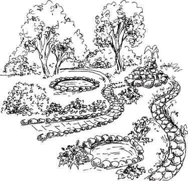 Функциональные маршруты, как правило, прокладывают по прямой: от дома к огородным грядкам, от дома к бане, от дома к детской площадке и т. д. При возможности эти маршруты можно провести по плавной кривой.