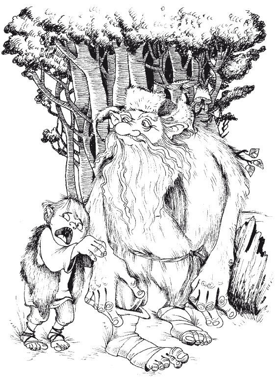 Климушка узнал это в десять обхватов старое дерево, быстро сбросил мешок, прицепил к ногам кошки и поднялся к дуплу, на высоту конька крыши деревенской избы и, не раздумывая, сунул руку в глубокое дупло. Оно уходило далеко вглубь дерева. И тут боль пронзила запястье: кто-то впился в него зубами и когтями сразу. Кузнец резко выдернул руку и с трудом вытащил наружу что-то похожее на мохнатого ребёнка. Но даже в темноте Клим различил: существо зелёного цвета, пахнет мхом и необычайно мохнатое. Оно вцепилось в его руку зубами и острыми когтями.