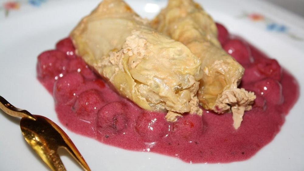 Тушить на медленном огне 1-1,5 часа. Подавать голубцы с вишневым соусом.
