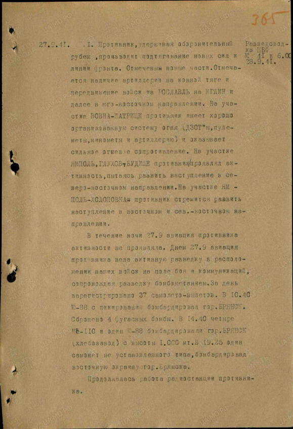 Оперативная сводка за 28 сентября 1941 года