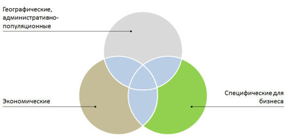 Всего о любой территории, на которой собирается работать компания, нужно знать три группы сведений: географические и административно-популяционные, экономические и специфические для конкретного бизнеса.