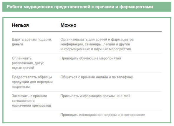 Возможности продвижения фармацевтических продуктов во время визитов медицинских представителей и сами визиты стали сильно ограничены. Далее иллюстрации того, что можно, и что нельзя делать при продвижении рецептурного препарата и взаимодействии представителя компании с врачом и аптекой 9: